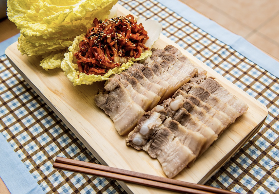 보쌈은 부드러운 돼지고기에 마늘, 생강, 월계수 잎 등 향긋한 향신료를 넣어 천천히 끓이는 한국 대표 요리입니다. 천천히 조리하는 이 방법을 사용하면 고기에 육즙이 많고 풍미가 풍부하며 젓가락으로 쉽게 떼어낼 수 있습니다. 돼지고기는 일반적으로 얇게 썰어 양상추나 배추 등 신선한 야채에 싸서 다양한 양념을 곁들여 식감과 맛이 조화롭게 어우러져 매우 만족스럽습니다.
